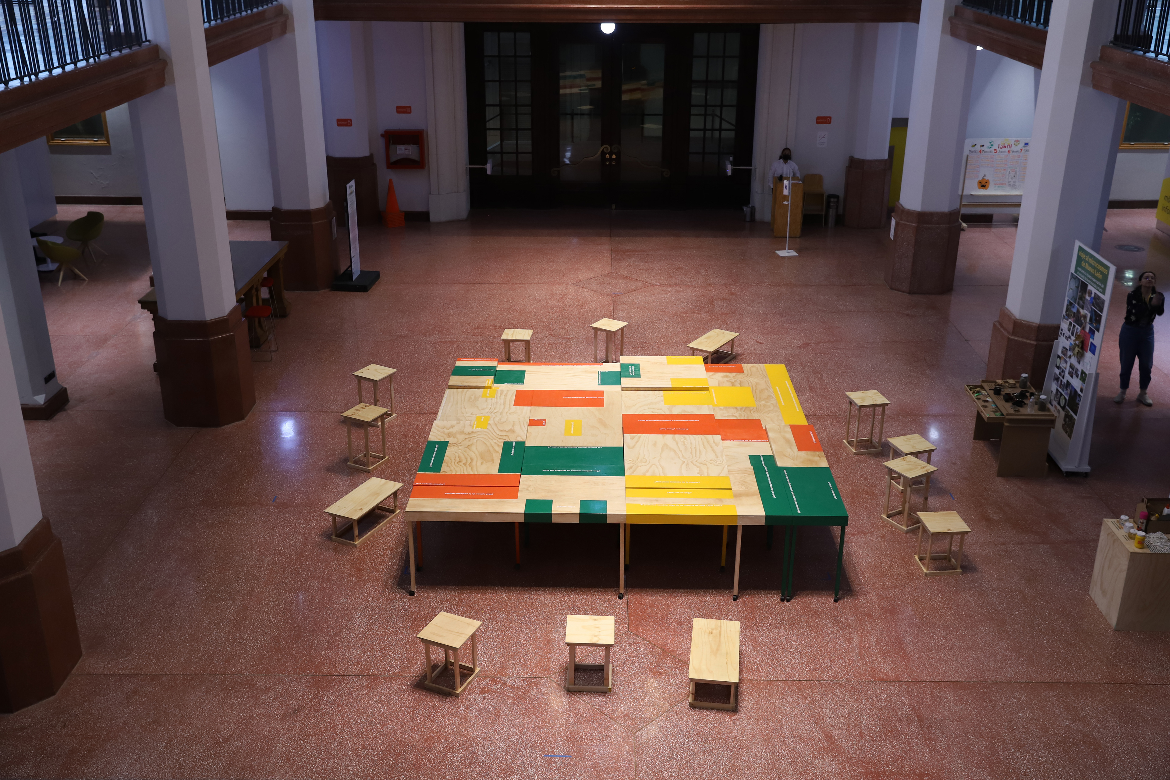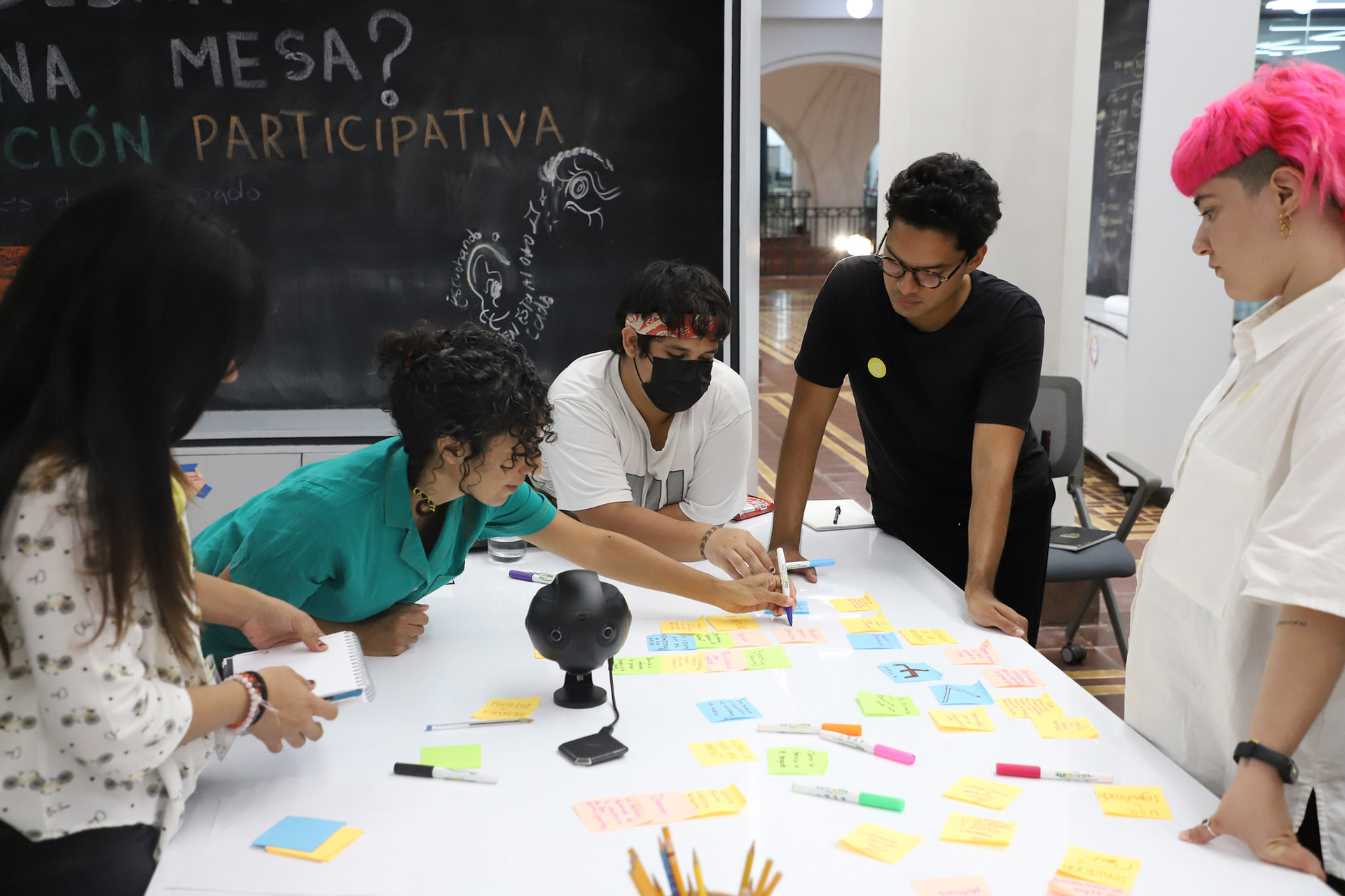 ¿Cómo desaparecer una mesa? Instalación participativa' es un proyecto de sesiones de prototipado promovido por Rita Ponce de León, artista invitada en el Programa de Arte Público Las Artes Monterrey, y llevado a cabo en LABNL Lab Cultural Ciudadano. Esta iniciativa consiste en un prototipo colaborativo que busca crear afectos y relaciones por medio de una mesa interactiva instalada en el vestíbulo de LABNL.